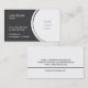 Professional and Elegant Half Circle Dark Grey and White Business Card. Card is fully customisable. You can add your logo image, or any picture on the white space to the right. Phone numbers and address on the front and electronic contact info on the back.