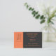 🟠 Flip the card over, and you'll find an eye-catching design: an illustration of essential working tools elegantly enclosed in a rectangular frame. This vibrant orange side captures attention, communicating your specialisation in a visually appealing manner.
