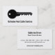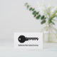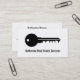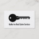A professional, modern, sleek and contemporary business card in classic black and white. It has a logo of a key with cuts in the shapes and silhouettes of houses. For professionals in the industries of real estate like Real Estate Agent real estate agents and real estate brokers, present this key to your customers for their dream home! Personalise easily with your business details.