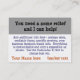 Perfect card to promote your new housecleaning business. It perfectly blends professional with friendly. It's thoroughly customisable so that you could even change it to promote a mother's day out program, daycare, a spa retreat etc. Features an illustration of a clearly exhausted and overwhelmed mother, slumped in a living room chair, still in her work clothes. Her children loudly play and argue right behind her while there is laundry to fold and toys to clean ,soccer practice to go to, paperwork to finish and dinner to be made. WHEW! She really could use help cleaning the house and this illustration will remind her of that and prompt her to call you the next time she really NEEDS RELIEF!