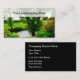 Scenic professional landscaping business card template with a nicely landscaped space on the front that features your company name and your business details on the back of this smart two side business card for a Landscaper, grounds keeper, or property manager.