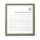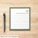 A professional lined notepad with a minimalist design in an olive green and white color palette. Custom monogram initial and name on a simple white background, framed by an olive border. Personalize using the fields provided or use the 'message' button to contact the designer for help.