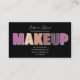 The perfect visiting card for professional make-up businesses with harmonic colour palette letters showing elegant colour combination with the word MAKEUP on black background.