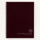 Modern notebook features a minimal design in a burgundy and grey colour palette. Custom name presented in the lower right hand corner in stylish simple font with a complimentary minimal monogram medallion.