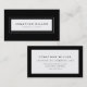 Professional business card featuring a minimalist design in a black and white colour palette. Custom name and title presented in complimentary black frame with white accents. The back of the card is complimentary to the front with name, email address and contact information presented in coordinating typography.