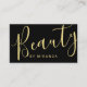 featuring word "beauty" in modern calligraphy font style on front side and details in modern sans serif font style on back side.