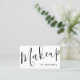 featuring word " makeup" in modern calligraphy font style on front side and details in modern sans serif font style on back side.
