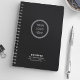 Make a bold statement with this black logo branded notebook, a sleek and sophisticated addition to your professional essentials. This customised notebook features your company name, logo, and a powerful slogan on the cover, making it a standout representation of your brand. The deep black colour exudes professionalism, while the high quality pages inside provide the perfect canvas for your thoughts, notes, and creative ideas. With contact details prominently displayed, this notebook becomes a direct line to your business. Whether used for meetings, brainstorming sessions, or as a thoughtful corporate gift, this black notebook is a symbol of your brand's commitment to excellence. Elevate your corporate identity with this stylish and functional branded notebook.