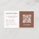 Showcase your professionalism with this modern and minimal business card design. Featuring a warm earthy brown paired with a clean white background, this card is ideal for freelance writers, creative professionals, and entrepreneurs who want a timeless yet stylish look. The front layout includes your name, title, contact details, and a bold QR code section for quick access to your website, portfolio, or social media. On the back, a simple star-inspired graphic adds a touch of elegance, making your card memorable and unique. Printed on premium cardstock, this business card perfectly balances sophistication and simplicity—ideal for networking, client meetings, and branding.