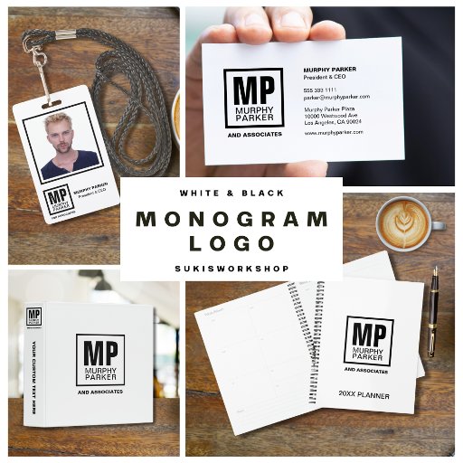 Custom make your own photo employee badges with this professional monogrammed logo. Logo has a modern, simple and bold design. It is versatile and easy to customise and transfer on to other office and promotional products. It can also be used as a personal monogram by omiting the type of business or tag line at the bottom.
