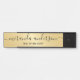 This door sign features name in black modern script font style and title in black modern sans serif font style on gold background.