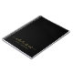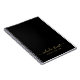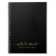 Professional Modern Notebook featuring name in gold modern script font style with custom text in gold modern sans serif font style on black background.