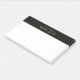 Professional Modern Post-it Notes featuring name in gold modern script font style with custom text in gold modern sans serif font style, on black with gold stripe upper border, on white background.
