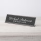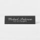 This desk name plate features name in white modern script font style and title in white professional serif font style on black background.