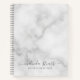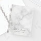 Professional Modern Notebook featuring name in grey modern script font style with custom text in grey modern sans serif font style on white marble background.