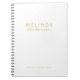Professional Modern Notebook featuring name in gold modern sans serif font style and last name in gold modern calligraphy font style on white background.