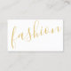 featuring word "fashion" in modern calligraphy font style on front side and details in modern sans serif font style on back side.