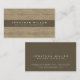 Professional business card features a modern wood plank pattern in a stylish neutral colour palette. A simple design with custom name and title or role presented on a coordinating banner with complimentary accents and text. The back of the card is plain and simple with coordinating text.