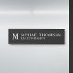 This hanging name plate features monogram with name and title in white professional serif font style on black background.