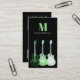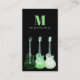 Semi acoustic guitars in cool funky pop art psychedelic green on a black background complete with personalised monogram, name, details and QR code. The perfect simple business card design for guitarists, professional musicians, entertainers and music teachers. Original artwork by artist Catherine Sweetman