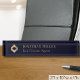 Elevate your professional space with our Professional Navy Blue Custom Logo Desk Name Plate, featuring a gold geometric diamond logo emblem that can be used as is or customised with your logo. Perfect for realtors, real estate agencies, property managers, and other business professionals, this customisable nameplate adds a touch of elegance to any office environment.