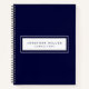 Modern professional notebook features a minimal design with personalised name and title presented in a navy blue and white frame. Simple, stylish, elegant, and minimalist design that you can personalise with your name in simple classic typography lettering.