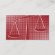 A professional notary, lawyer red business card shows a law profession describing scale. On the return, side placeholders offer space for a profile photo, Qr code for scanning, name, professional title, and contact details including phone, physical address, and social handles like LinkedIn and Twitter. For information about colour in branding and branding tips visit www.KBMD3signs.com To request customisation assistance or to discuss a custom design, contact info@KBMD3signs.com