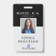 (3) Prominent title display ("NURSE, R.N.") to ensure clear role identification.