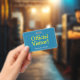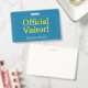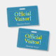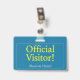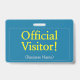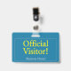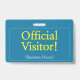 This professional badge design features the message "Official Visitor!", and a customisable company name or other custom message. It also features a single-line border with rounded corners. A badge like this could be used to indicate that a visitor or guest at a workplace is allowed to be there. [~Z0000307]