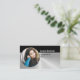 This business card design features a photo placeholder with template name and occupation on the front. The back includes a template text field for the business name and details. Replace the placeholder photo with your photograph. Fill in the personalise fields, remove any text or edit using the design tool to select a font style, size, and colour you like. Choose from twelve paper styles. The placeholder photo is courtesy pexels.com.
