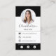 Professional Elegant and Modern Minimalist Photo Black and White Business Card that allows you to include headshot photo or picture, Name, Job Title, Email, Phone Number, Website and Social Media contact information.