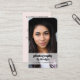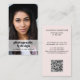 Chic business card with your photo overlayed by your profession and name in bold and trendy typography. On the back, add your website url address to create a scannable QR Code and personalise with your contact information in modern typography against a light pink background.