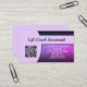 Black ombre and purple glitter sets off the front of this business card design featuring a QR code placeholder and business details. Replace the placeholder QR code on the front with yours. Fill in the template fields or click customise to select a typeface style, size, and colour you like. The blank back with matching pastel purple leaves ample room for personal handwritten notes.