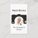 Professional QR Code Photography & Design. A Professional custom business card template with Camera Shape Style combination can easily be updated with your Photo or logo, QR code, Name, Profession Title, Address, Phone, Mobile, Email and Website.