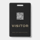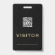 Keep your visitors and guests easily identified with this simple customisable QR visitor badge. The sleek black design features golden accents and space to upload your QR code and text that reads "Visitor" in a classic font. The QR code makes it easy for guests to access important information about your facility or event. The text at the bottom reminds visitors to please return the badge before leaving. This badge is perfect for businesses, hospitals, schools, museums, attractions, and more.