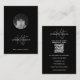 A beautiful black modern photo business card design with QR code. A simple and professional way to introduce your business. Social media handle included in the design of this business card for you to use. Personalise your monogram and details to create your own unique business card.