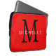 Professional Red Black Monogram Your Name Laptop Sleeve
