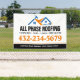 Roofing service hanging banner with your personalised text, change the text yourself when ordering, keep the existing graphic or replace with your own logo