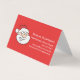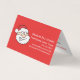 Informal but stylish and funny folded business card for professional Santas to hand out, but also to use as small mini stands on tables. The smiling face of a jolly cartoon Santa delivering Christmas gifts, with customisable white text on red background. On the inside you can write your "resume" or short info about where you are located, your fees, happy customer references etc. If you want a blank inside simply remove all inside text.