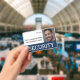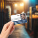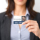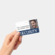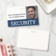 This custom identification badge features a "SECURITY" title across the bottom portion over a blue banner. A sample security guard photo is placed on the right which you can personalise to include your own photo ID. The company name and employee name are printed to the left of the picture.
