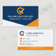 A clean and professional mechanic business card design featuring a bold gear and checkmark logo. The modern layout with navy and orange accents creates a strong, trustworthy impression for auto repair shops, garages, and service technicians. Perfect for mechanics, contractors, and automotive professionals who want a reliable and easy-to-read business card to share with customers.