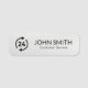 A sleek silver name tag with company logo, designed for the customer service team. It's a simple and professional way to identify helpful staff members.