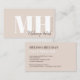 Simple Beige Boho Neutral Professional Initial Monogram Business Card. You can change it to any business you want, makeup artist, lash specialist, hair stylist, or even something like marketing, consulting, and more! Featuring a mix of neutral tan and beiges and white fonts in classic and bold typography mixed with an more elegant script font with the details. A trendy and chic look that is still professional and elegant. You can change out all of the colours to make it the way you want it. The side name on front should work with most initials, but if not, you may want to play around with the spacing in the full editor.