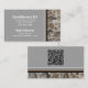 This design features a right border of a rough rock wall. The back has a placeholder QR code. Personalize the text fields with your information or click customize to select a typeface style, size, and color you prefer. Replace your QR code with the placeholder on the back which features the same wall photo. This is available on a variety of other paper styles. The design can be used for any profession.