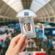 Photo ID badge in metallic construction style with space for your custom photo and logo. On the back you can add a custom bar code or QR code and additional texts or delete the templates.