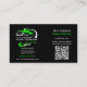 Professional Towing Company, Hauling Service Business Card. Featuring a tow-truck design. Green and Black. Personalise and add your business details. Add your QR code to your website. Also offering matching company shirts, magnets, and more for your business needs. Check out our store.