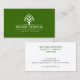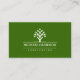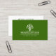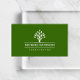 A bold, white tree full of leaves is set on a dark green on this professional business card template for landscaping companies. © 1201AM CREATIVE