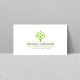 A bold, green tree full of leaves is set on a white background on this professional business card template for landscaping companies. © 1201AM CREATIVE
