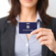 Professional visitor badges with template text dual-side design you can use to replace with QR code and information. Used as temporary passes for company visitors, event and convention guests and more.