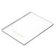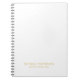 Professional notebook features custom name and text in gold classic serif font style on white background.